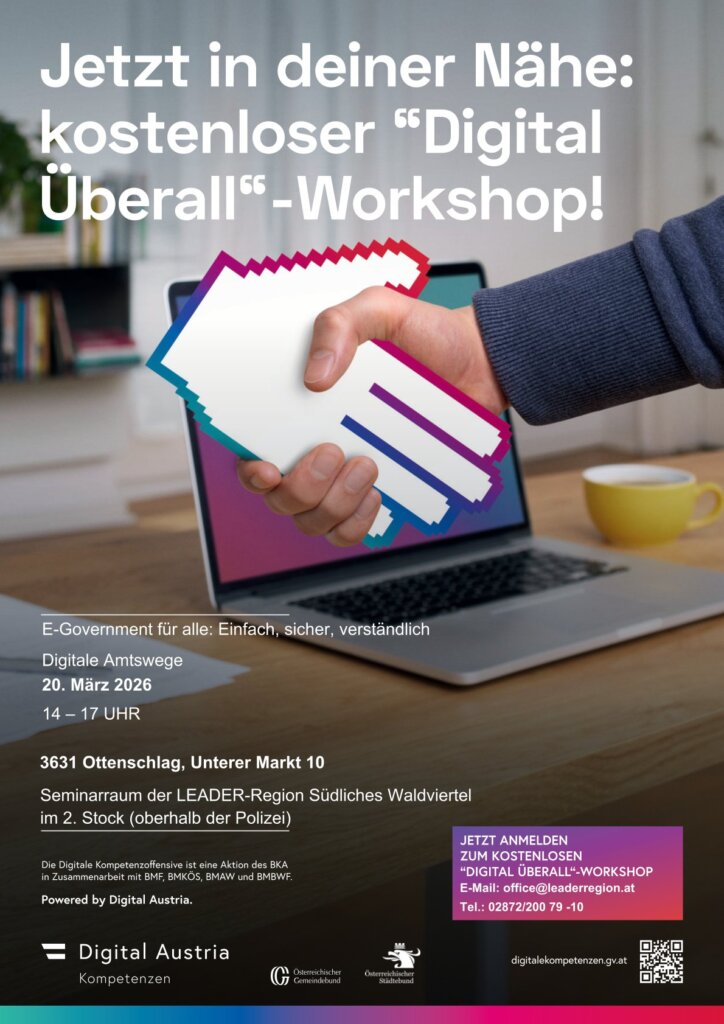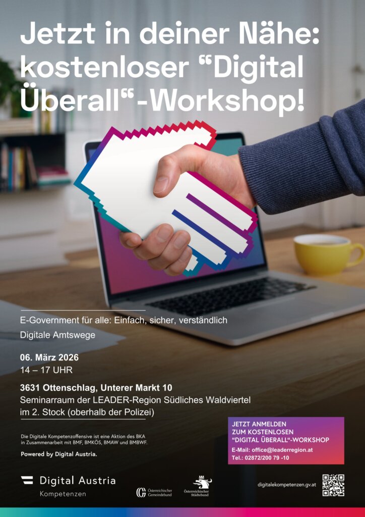 Dieser KOSTENLOSE Kurs zeigt, wie Sie wichtige Amtswege bequem und sicher online erledigen – mit dem Smartphone oder Tablet. In leicht verständlicher Sprache lernen Sie, die App „Digitales Amt“ zu nutzen, sich mit ID Austria zu registrieren, Dokumente digital zu unterschreiben und persönliche Daten zu schützen. Praktische Übungen vermitteln Schritt für Schritt, wie auch Onlinebanking und andere digitale Dienste sicher genutzt werden können – für mehr Selbstständigkeit und weniger Amtsstress im Alltag. Der Workshop schafft eine inklusive Umgebung und fördert die digitale Teilhabe aller Bürger/innen.